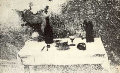 Aber um die Fähigkeit zu erkennen, ist wieder zu fragen, was sehen wir? Diesen Ausschnitt der Wirklichkeit, diesen gedeckten Tisch. Wir könnten den Tisch wahrnehmen, als das was er ist, was 1822 gewesen ist. Aber wir alle leben ja mit unserer Geschichte, Kultur, unseren Codes, also sehen die einen die Beschädigung der Fotografie, die anderen die Blumen und die Flasche Wein. Manche fragen sich, wo ist das Essen oder wie ist der Tisch denn eingedeckt, warum liegt der Löffel links? Wo ist die Gabel? Oder gibt es nur eine Suppe und Brot und Wein? Was soll das? Wer deckt so einen Tisch? Es ist also ein langer Weg, bis wir das Bild als Zeugnis und Bestätigung einer Realität erkennen und sehen und nicht als Gemälde, nicht als eine Kurzgeschichte.